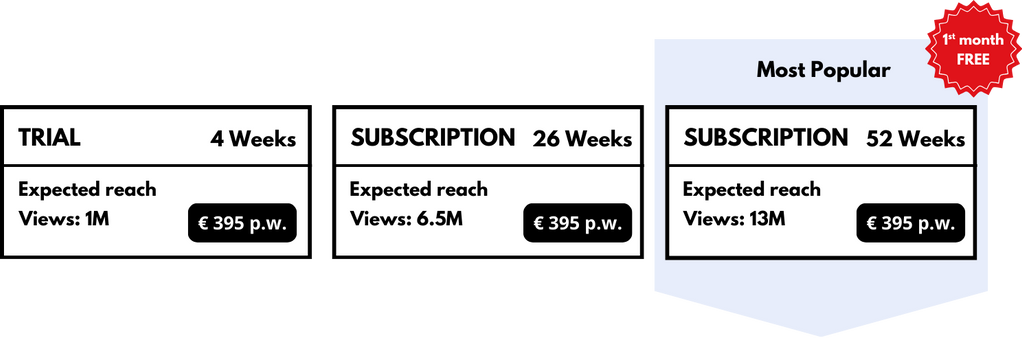 Small monthly fee, benchmark reach in impressions